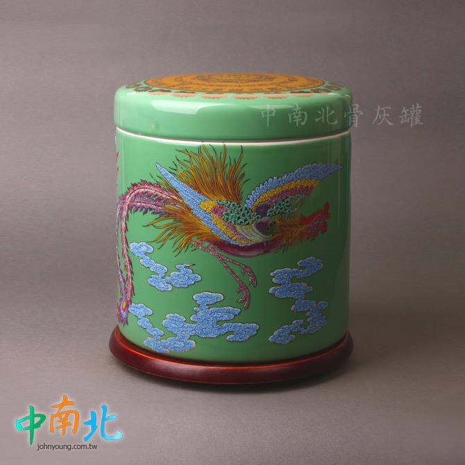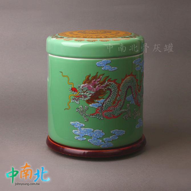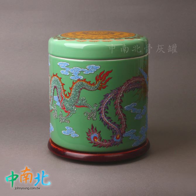 青綠陶瓷龍鳳骨灰罐