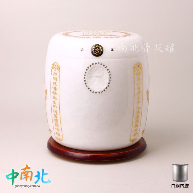 漢白玉心經白鋼防震骨灰罐