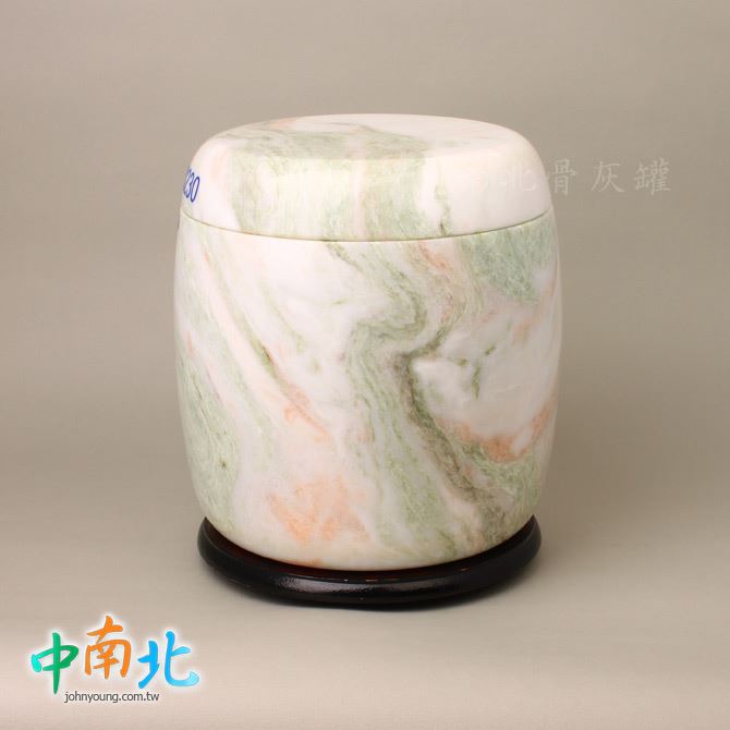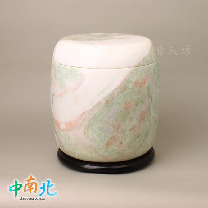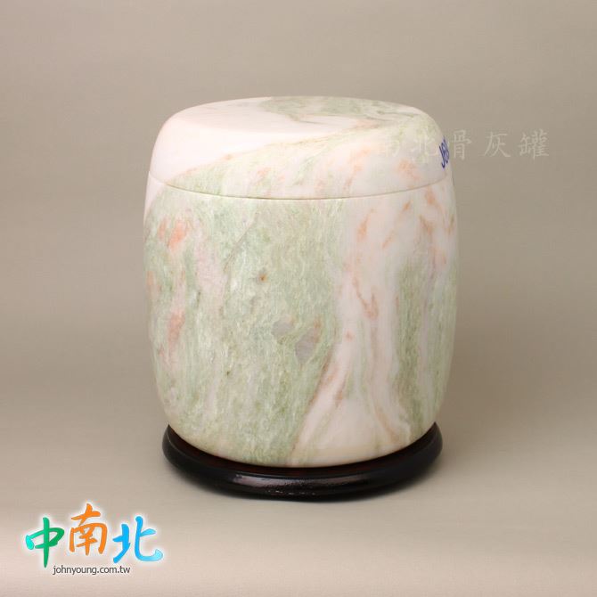 ▲骨灰罈為天然三彩翠玉製作,每一只石紋與色澤皆為自然形成、獨一無二。