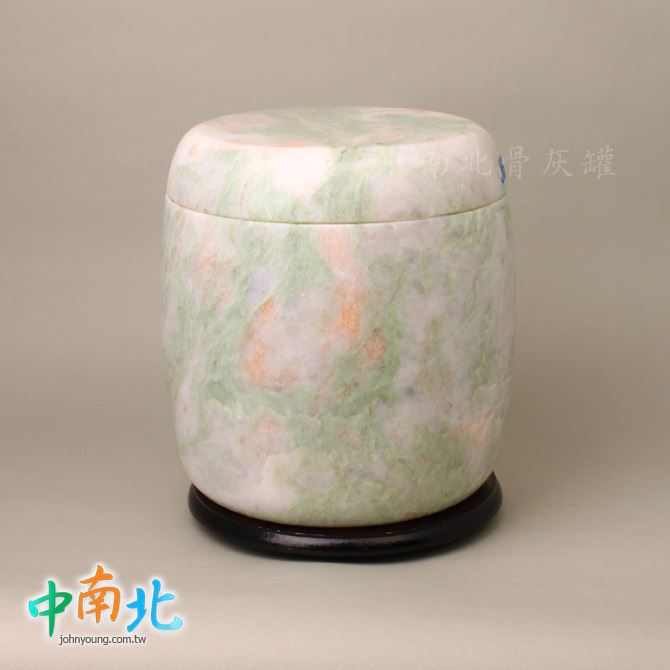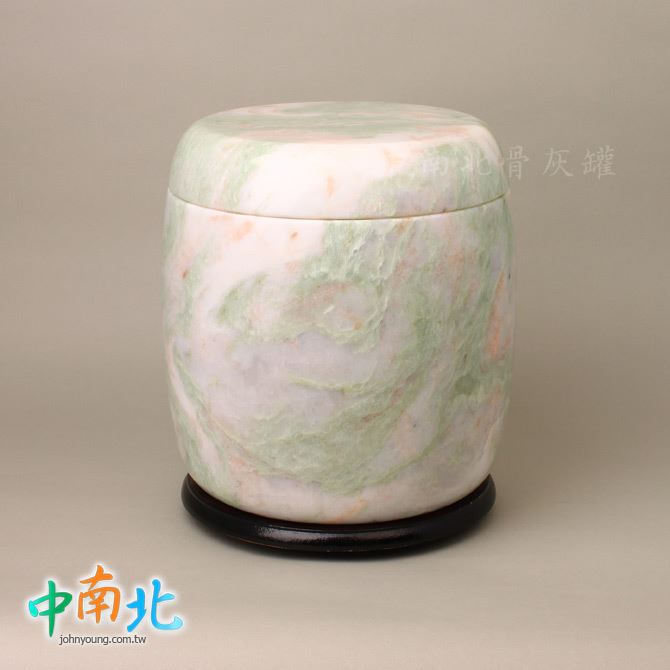 ▲骨灰罈為天然三彩翠玉製作,每一只石紋與色澤皆為自然形成、獨一無二。