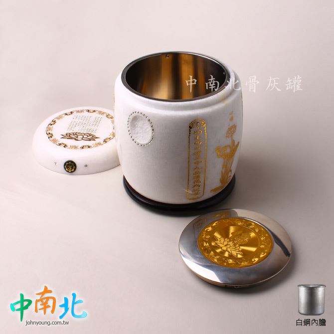漢白玉心經白鋼防震骨灰罐